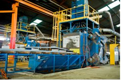 The company operates two inclined 8-wheel BCP Wheelabrator machines which are capable of blasting steelwork to near white (SSPC SP10) in a single pass. All blast profiles from a commercial blast to a near white steel condition can be achieved. In addition a manual blasting shop is available to blast larger structural components.